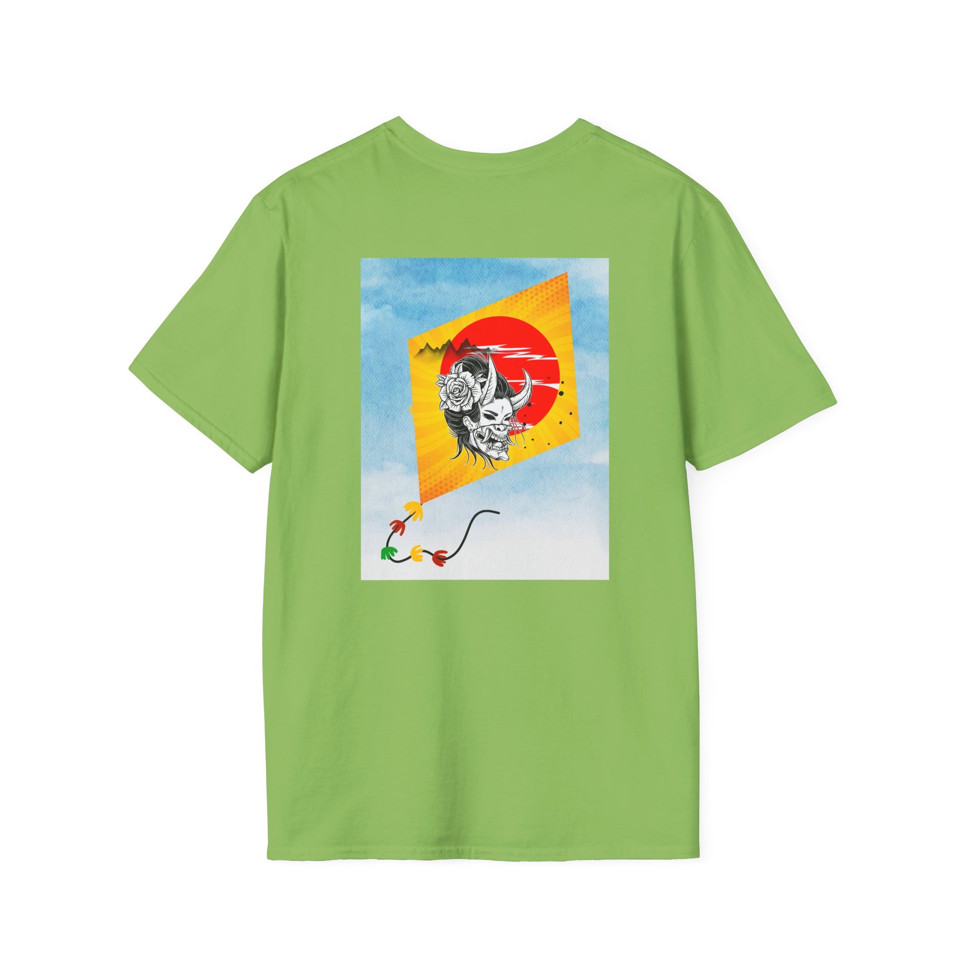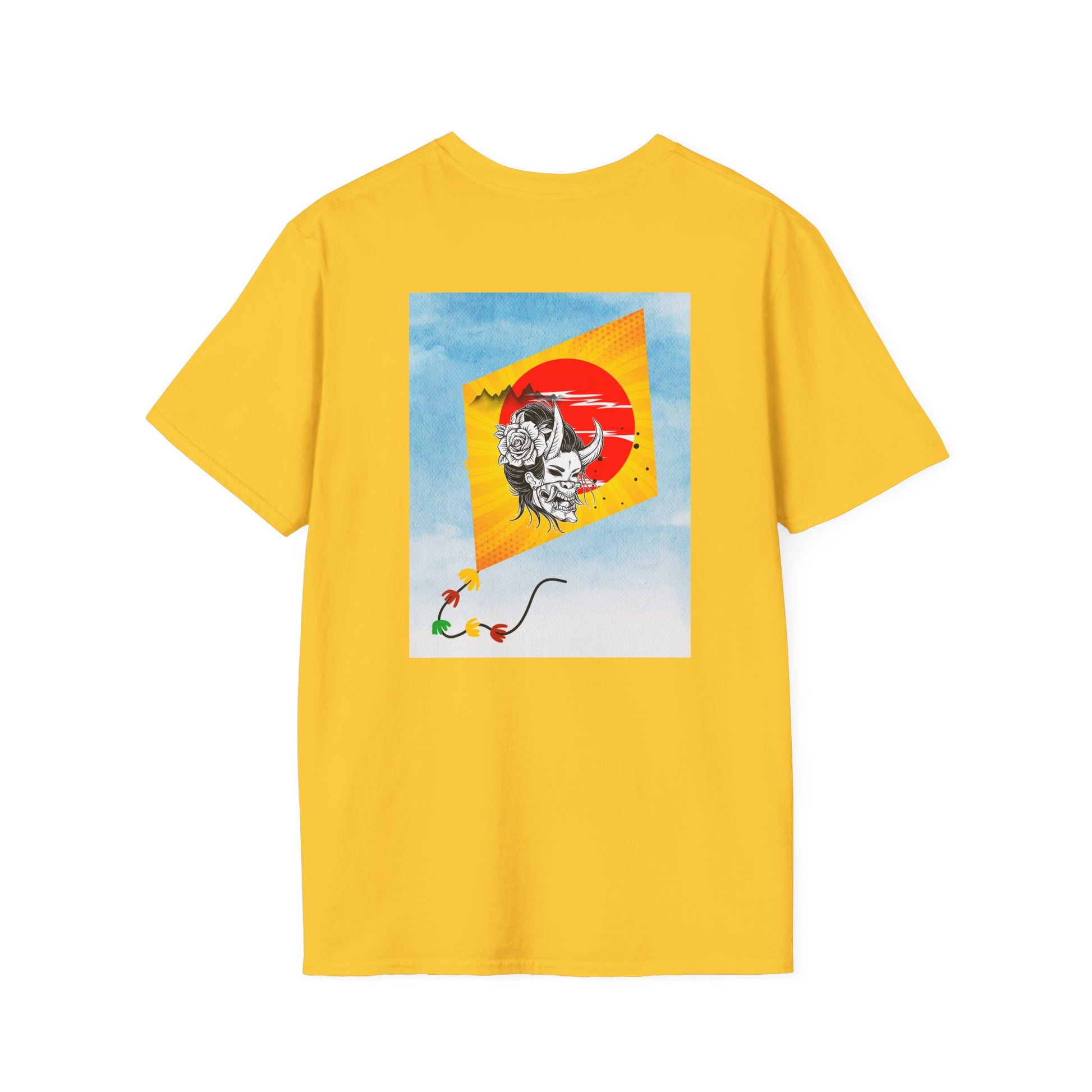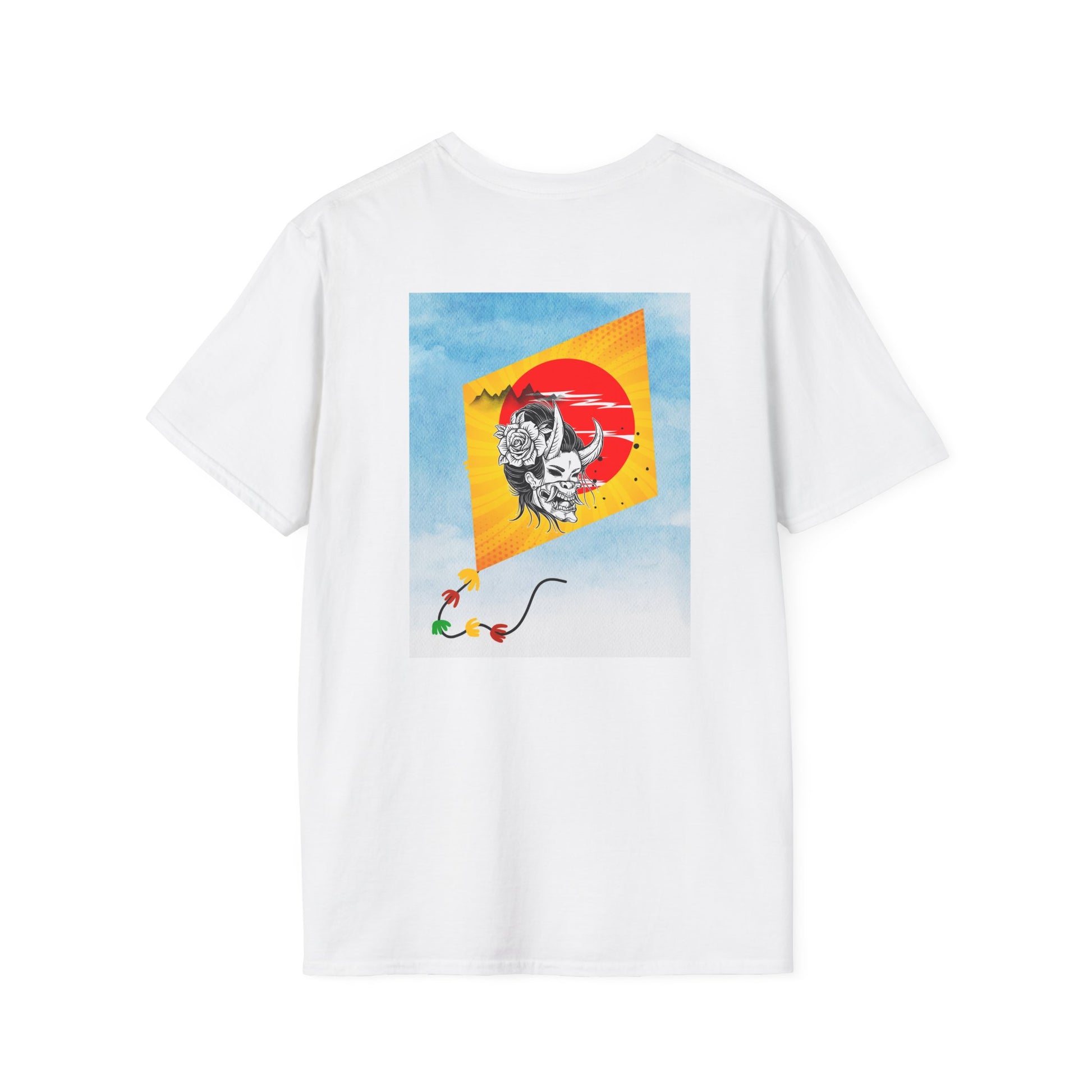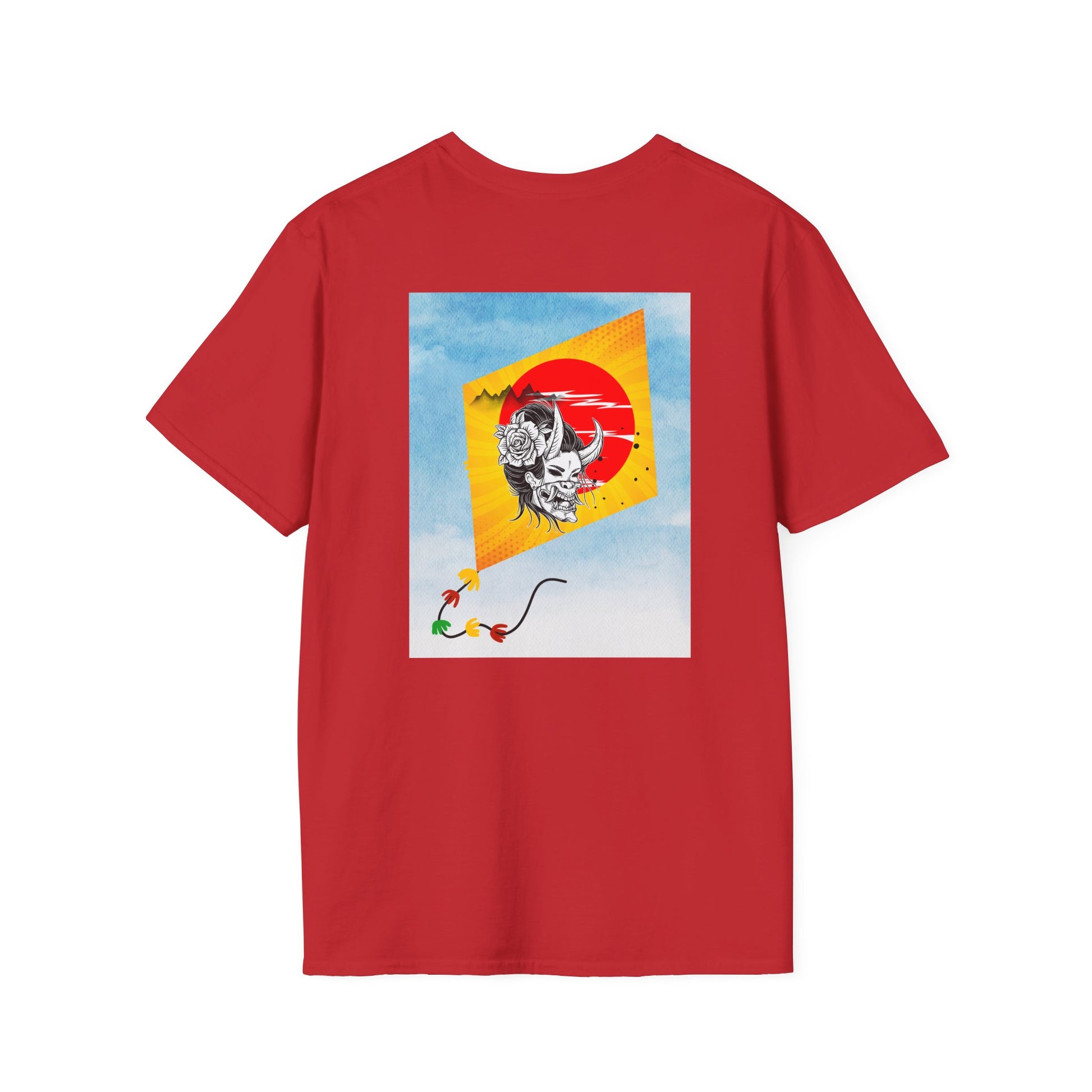 A unique T-shirt featuring a graphic of an Asian mask on a kite. This T-shirt is made with 100% ring-spun cotton, ensuring a lightweight and comfortable feel. The classic fit and crew neckline make it versatile for any occasion, be it formal or casual. Ideal for adults looking to add a touch of artistic flair to their wardrobe, especially during cultural celebrations or art-themed events.