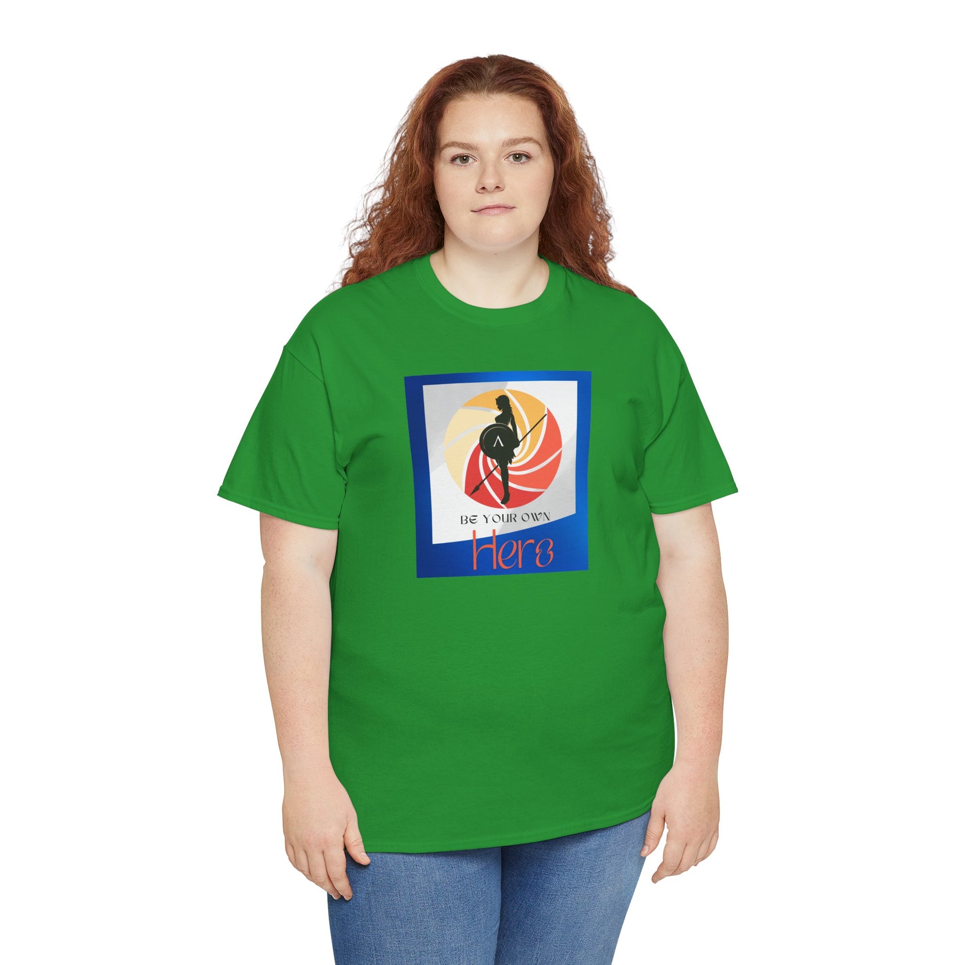 Empower yourself with this graphic T-Shirt featuring a female warrior silhouette and the message 'Be Your Own Hero'. Perfect for those who embrace empowerment and strength. Ideal for casual wear, daily inspiration, and as a gift for International Women's Day.