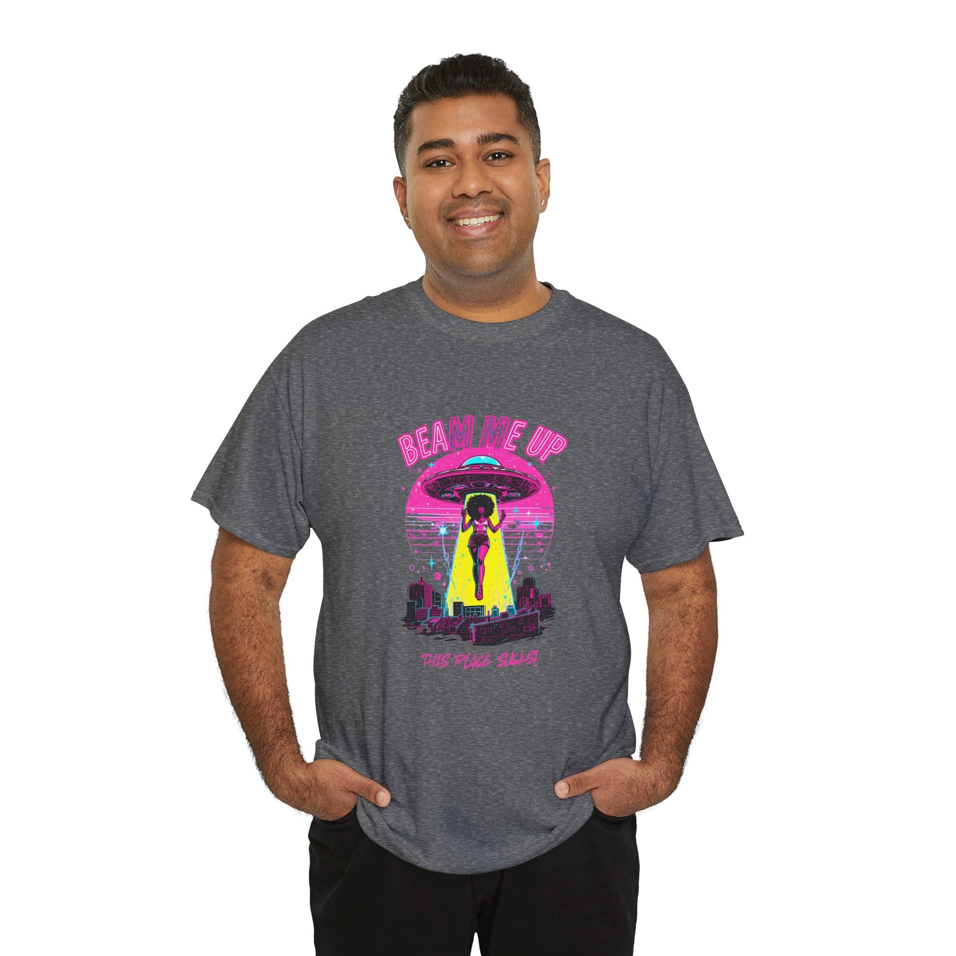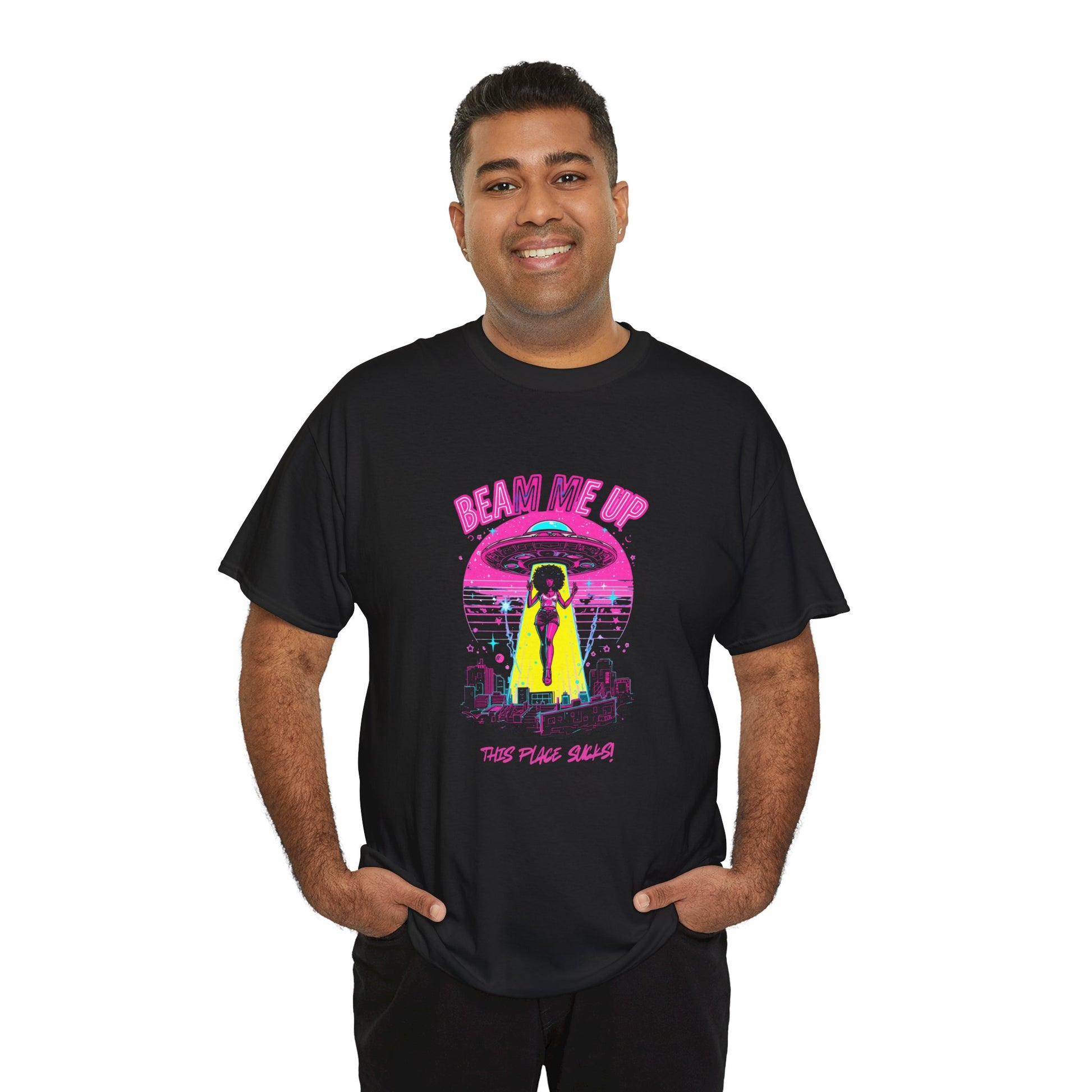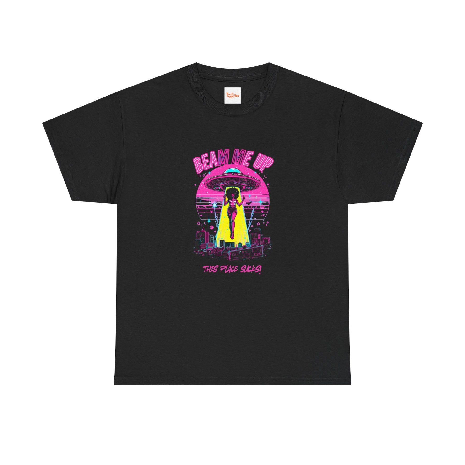 Beam Me Up T‑Shirt — Black Woman Teleport Graphic Tee