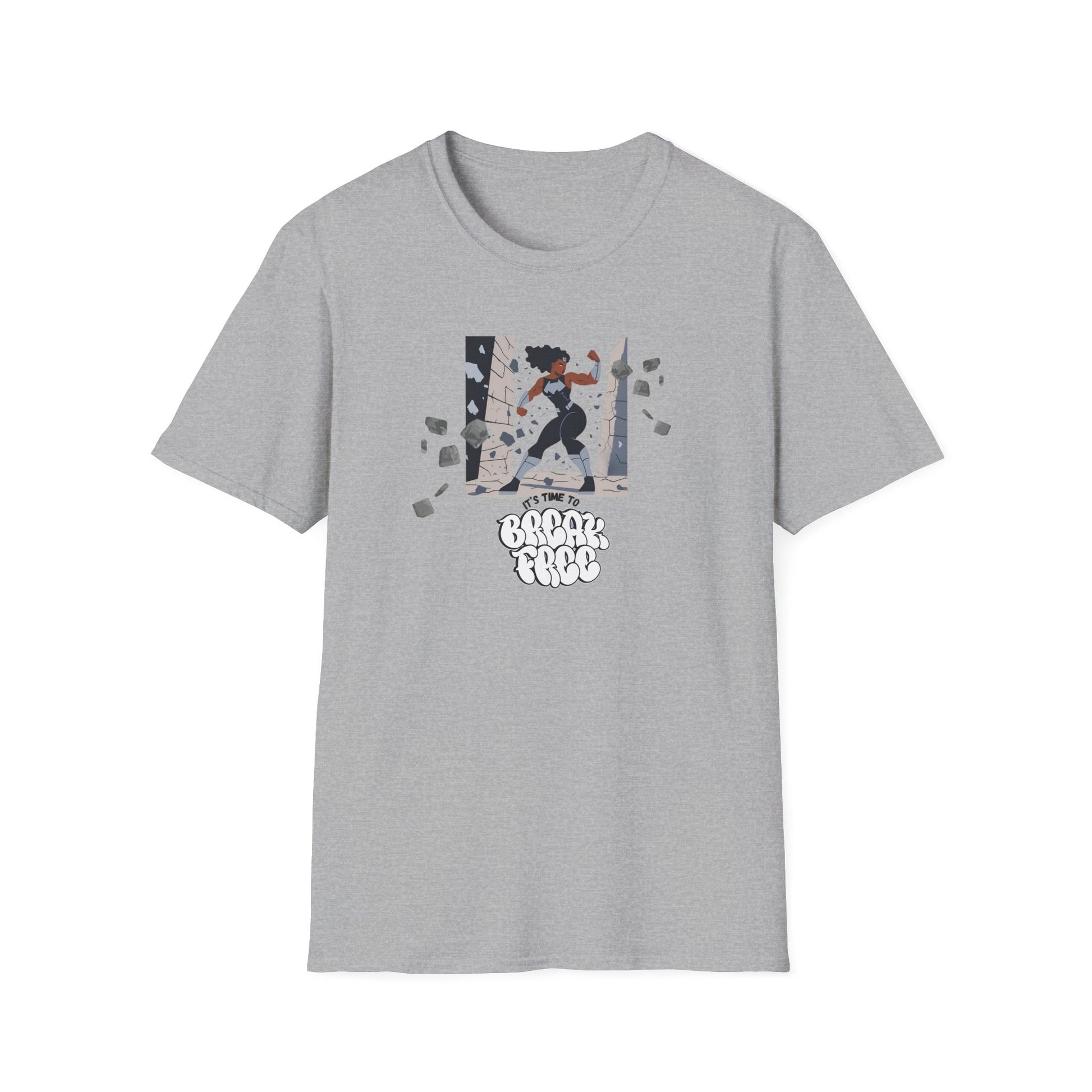 This lightweight tee carries a burst of defiant energy. A bold graphic of a Black superheroine smashing through a wall reads “It’s Time to Break Free,” turning the shirt into a wearable declaration of strength and liberation. The smooth, durable cotton lays flat for crisp printing so the image pops, while the classic crew cut and clean lines keep the look versatile — wear it under a jacket for city nights or layered for community rallies. It’s for someone who wants their clothing to speak with quiet authority: a reminder to themselves and a signal to others that they’re stepping into their power.