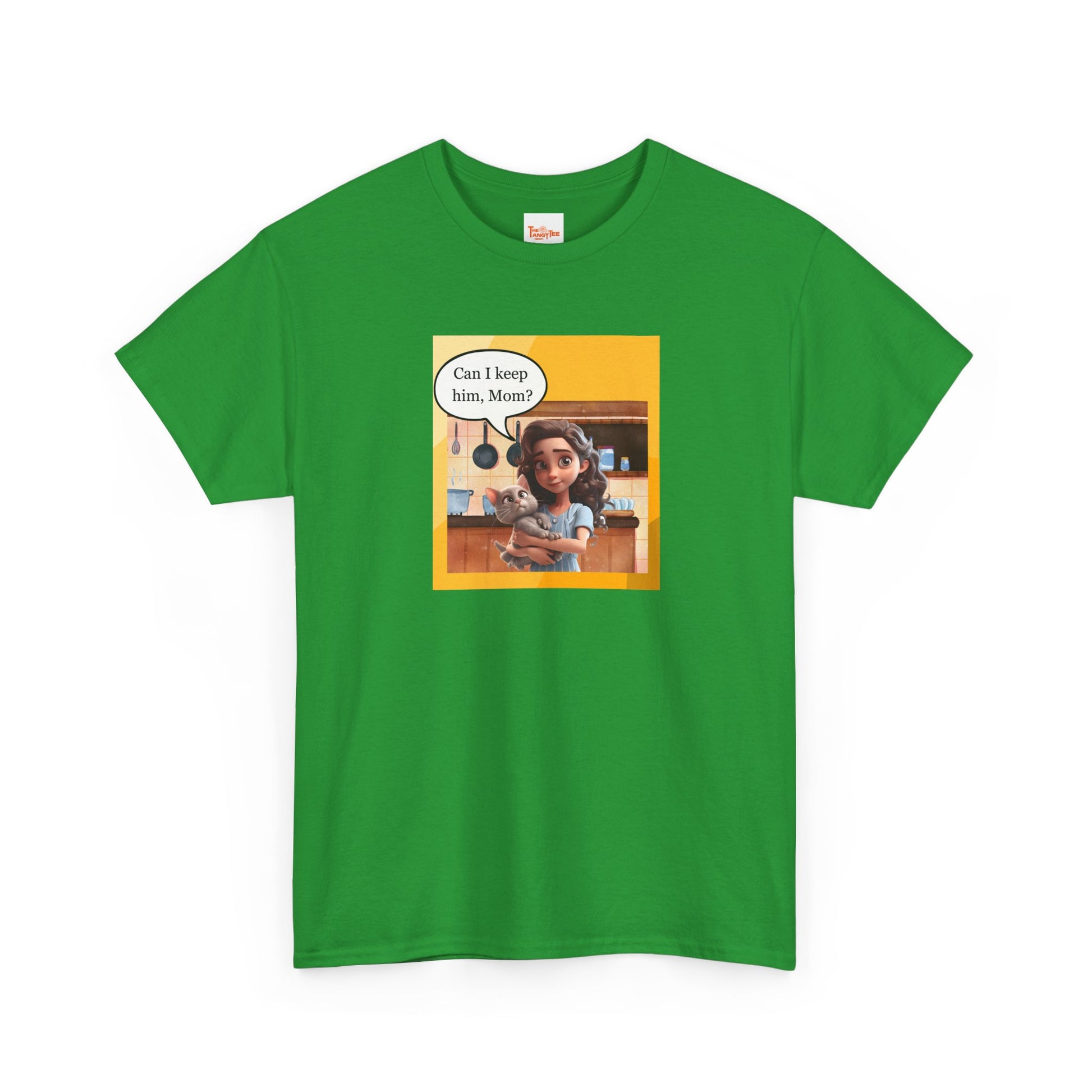 A cute and playful Tee featuring a graphic of a little girl holding a kitten, perfect for animal lovers and families. This Tee is versatile and can be worn on casual days out or lounging at home. Ideal for cat lovers and parents celebrating Mother's Day or birthdays.