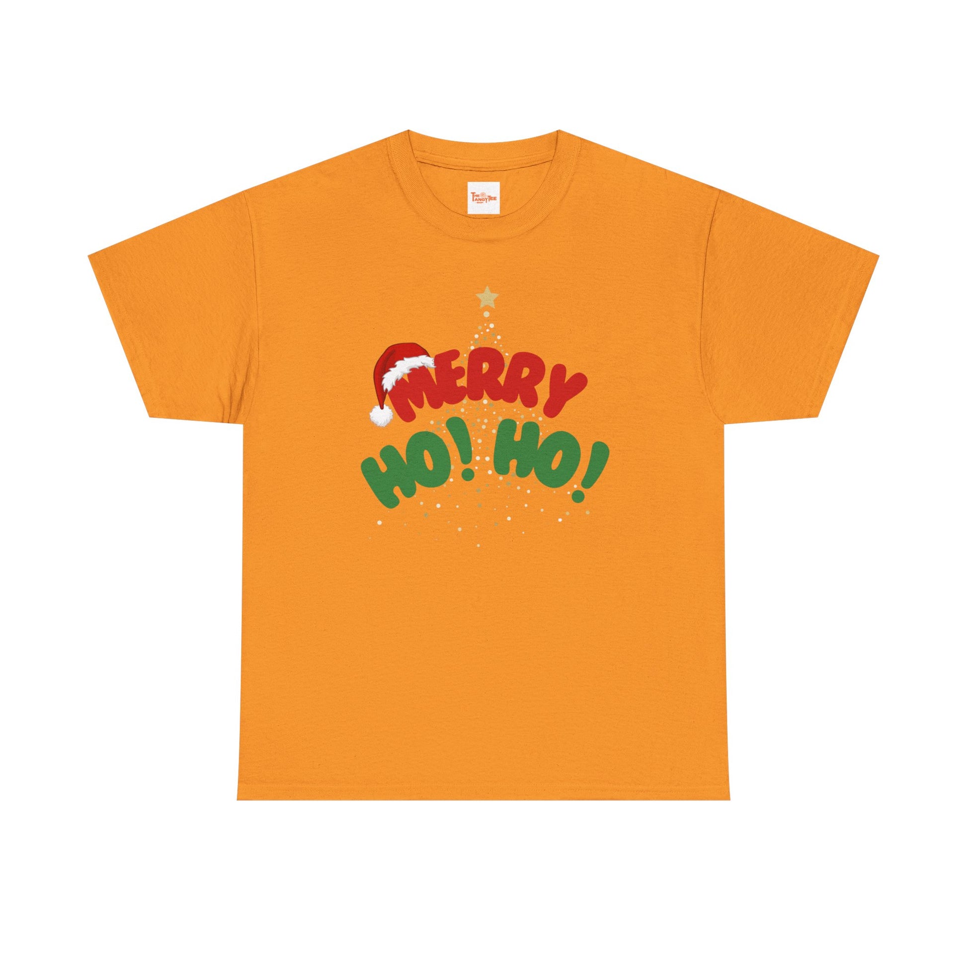 Spread the holiday cheer with this festive Christmas tree-themed T-Shirt. Perfect for anyone looking to bring some merry ho ho vibes into their wardrobe during the holiday season. Ideal for those who enjoy celebrating Christmas and want to showcase their festive spirit.