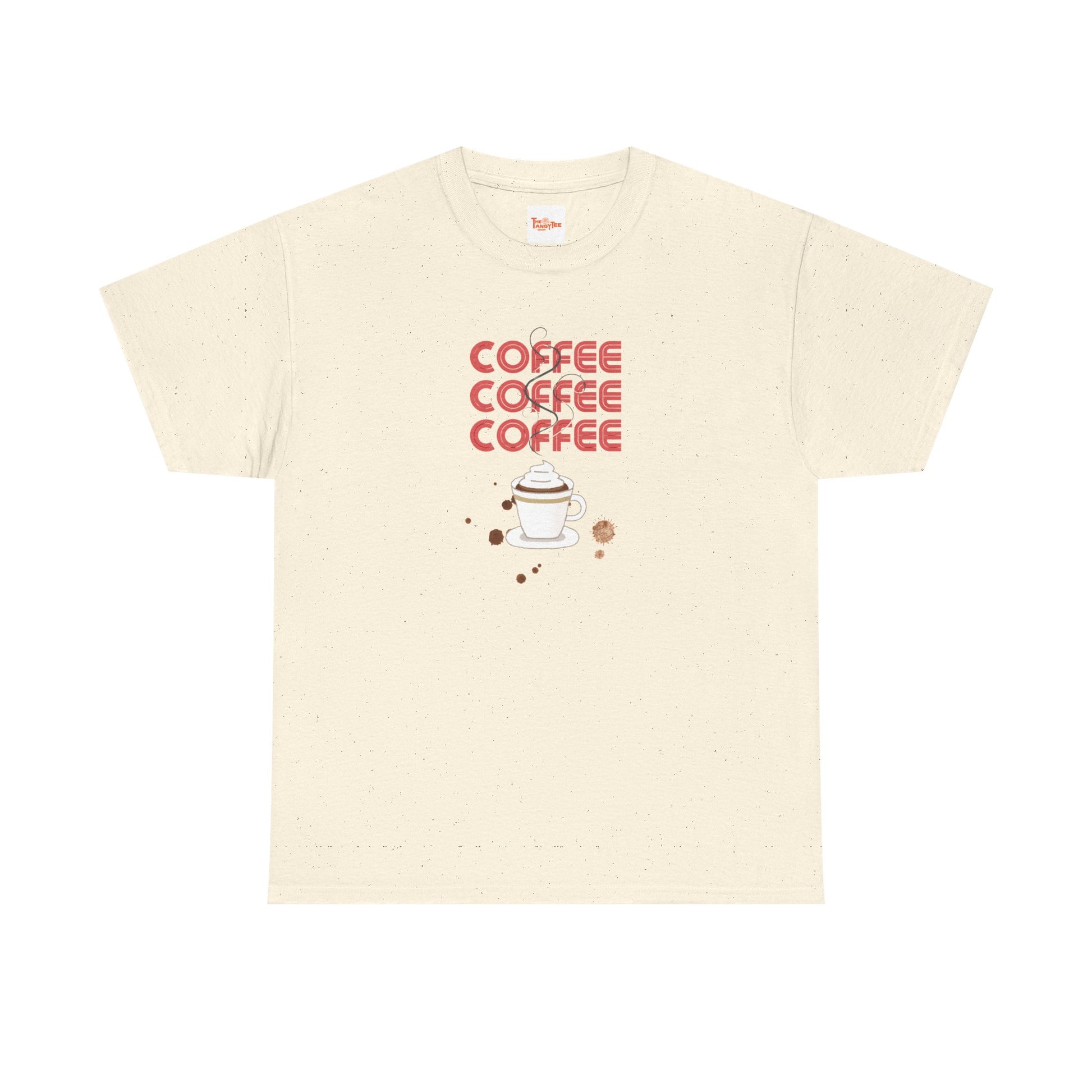 This Coffee, Coffee, Coffee graphic T-Shirt exudes a cozy and casual vibe, perfect for coffee lovers and those who enjoy a laid-back style. It's ideal for everyday wear, lounging around the house, or grabbing a cup of coffee with friends. This T-Shirt is great for gifting during coffee-related holidays or birthdays.