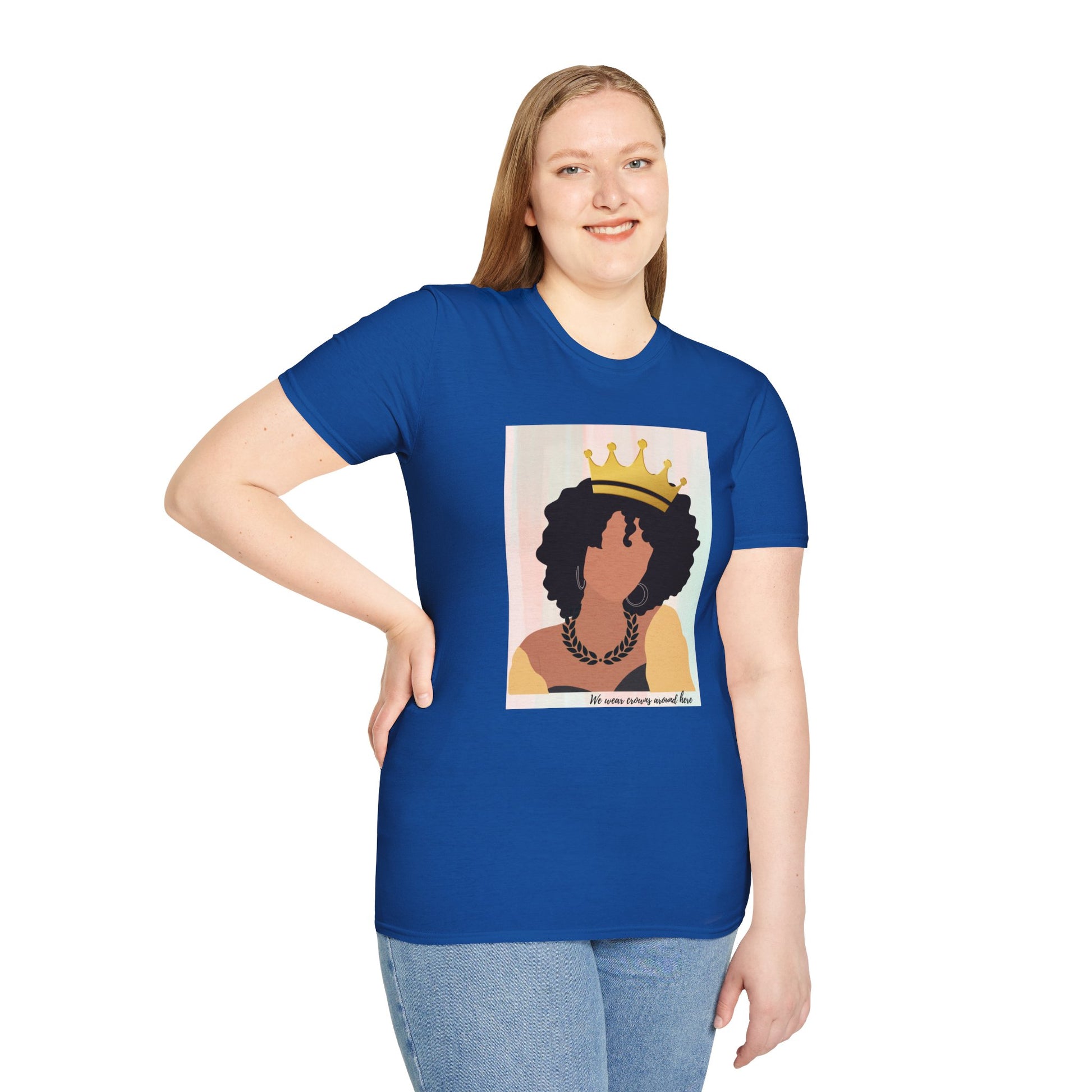 A comfortable and versatile T-Shirt featuring a graphic of a black woman wearing a crown. This T-Shirt gives off a regal and empowering vibe, perfect for anyone looking to express their confidence and strength. Ideal for those who celebrate Black culture and pride, this T-Shirt can be worn on special occasions or as everyday wear.