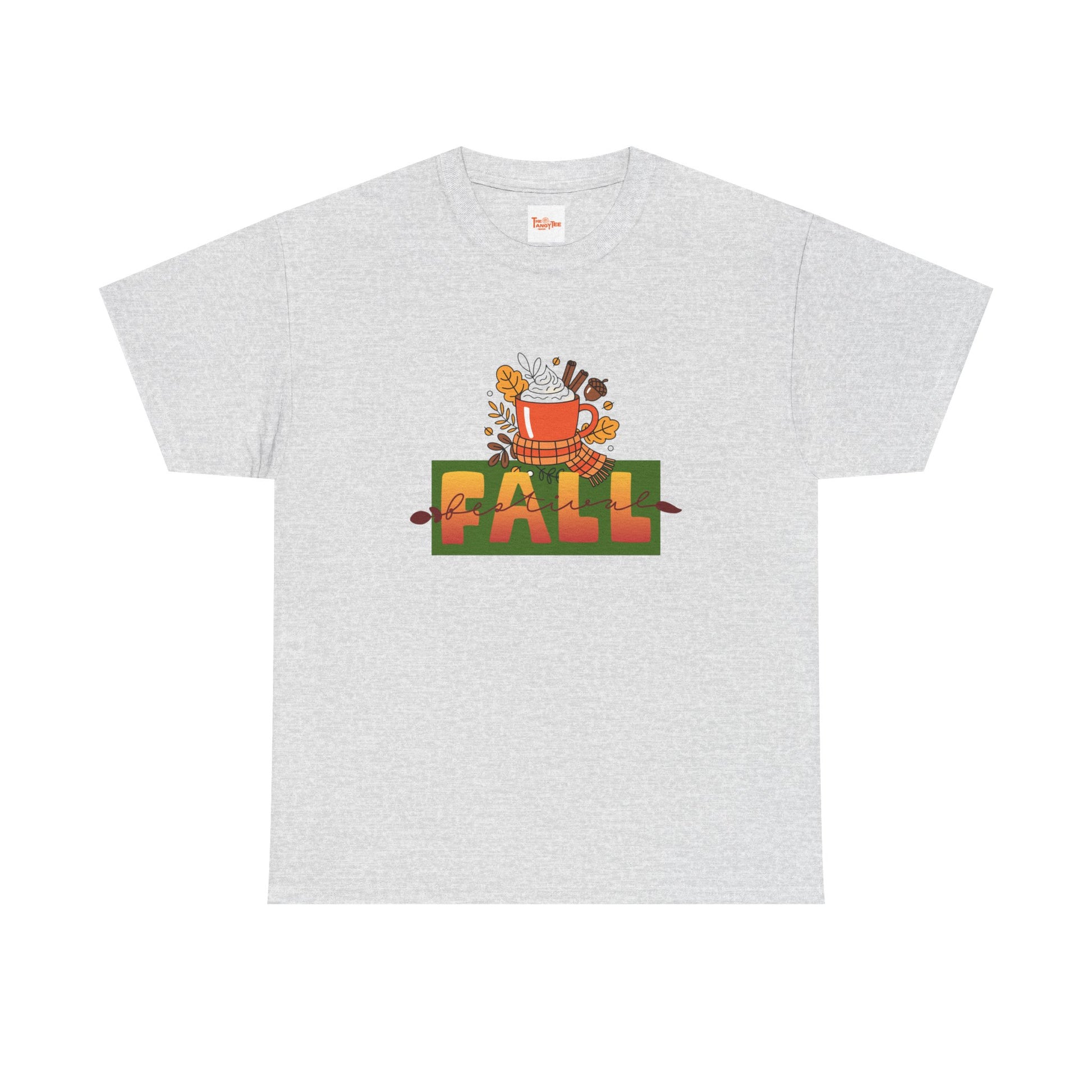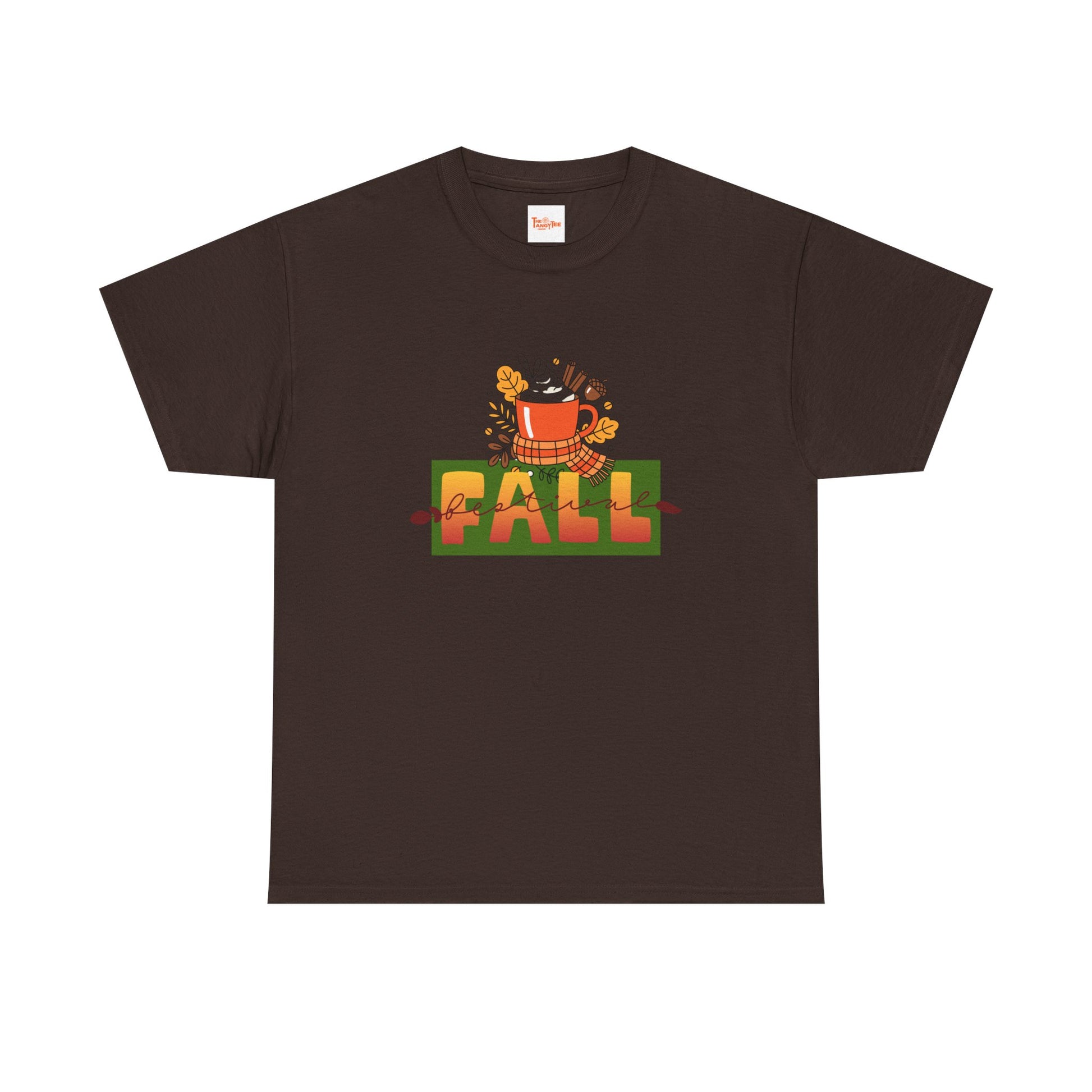 This Fall Festival tee features a graphic of a cup of cocoa, perfect for cozy autumn vibes. Ideal for adults looking for a comfortable and stylish shirt for holiday gatherings and fall events.