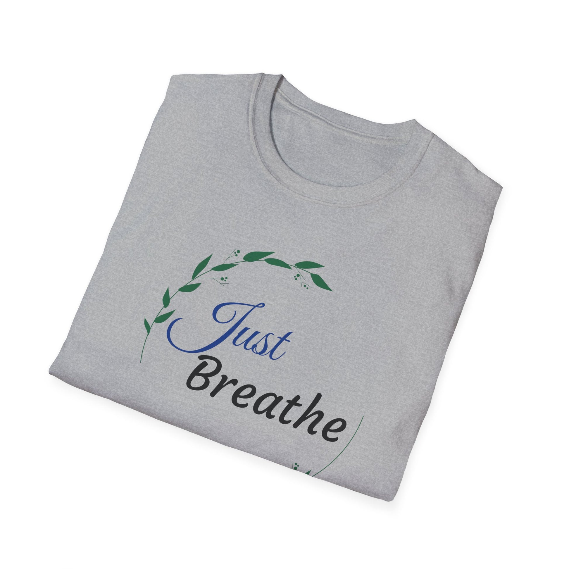 A comfortable and versatile unisex t-shirt featuring a 'Just breathe' design with a floral frame. This lightweight fabric feels smooth to the touch and is perfect for wearing all year round. The classic fit and crew neckline make it suitable for any occasion, formal or semi-formal. Ideal for those looking for a calming and positive vibe in their everyday wear, this t-shirt is perfect for people who enjoy mindfulness and relaxation. Great for gifting on birthdays, Mother's Day, or as a self-care treat.