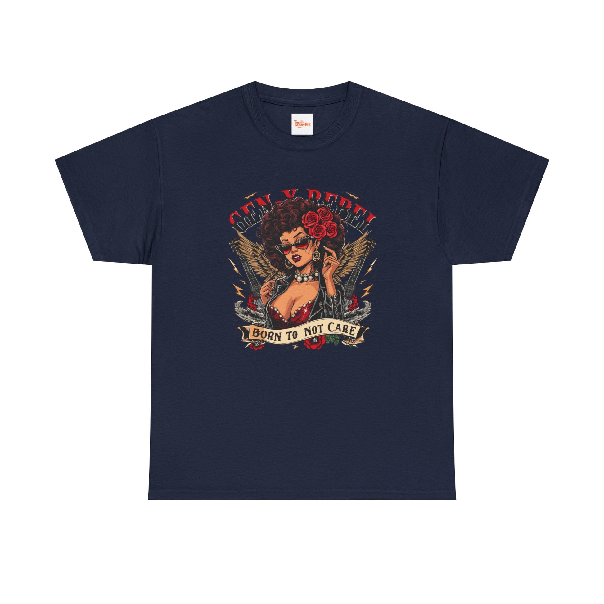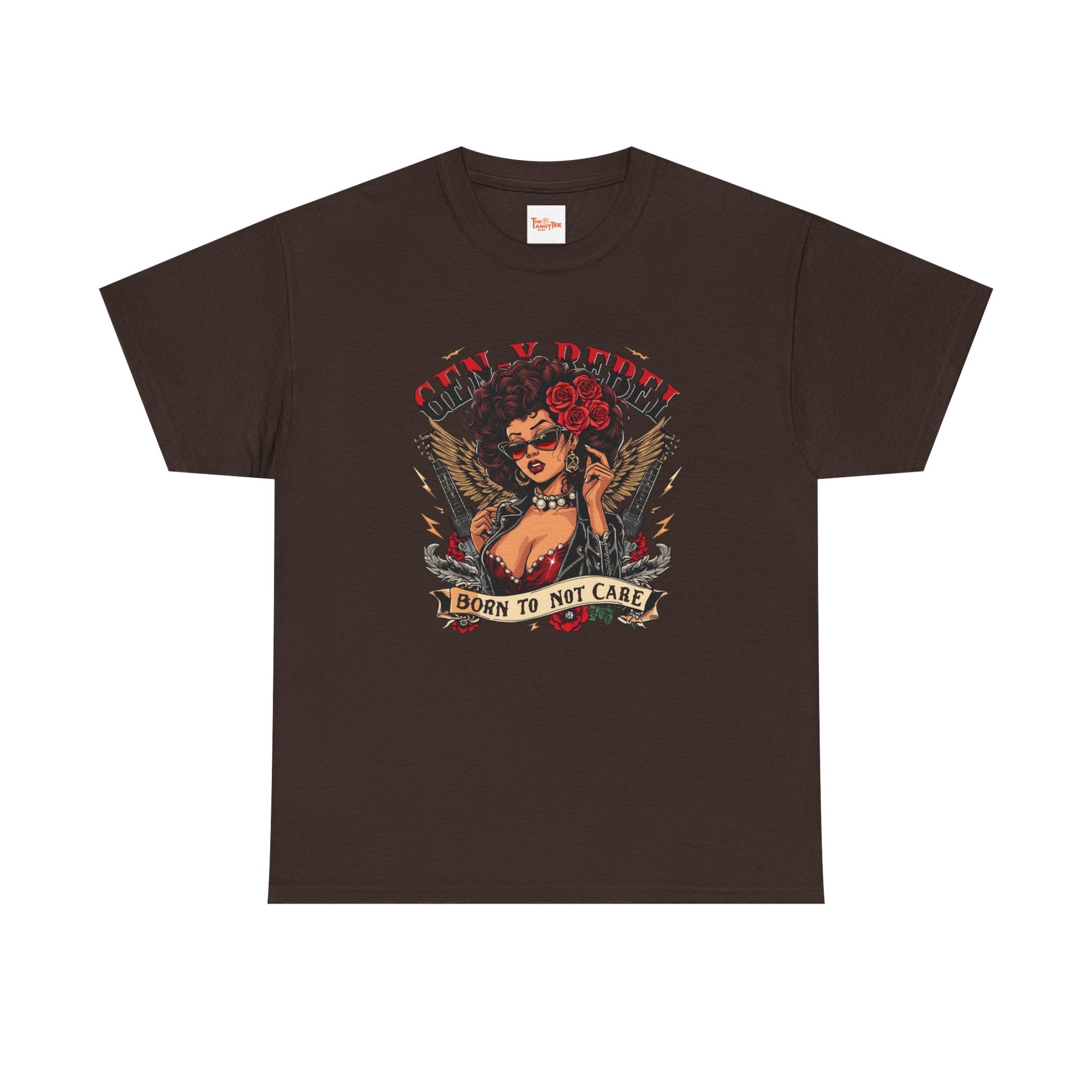 Gen X Rebel T-Shirt — African American Woman with Guitars & Roses Graphic