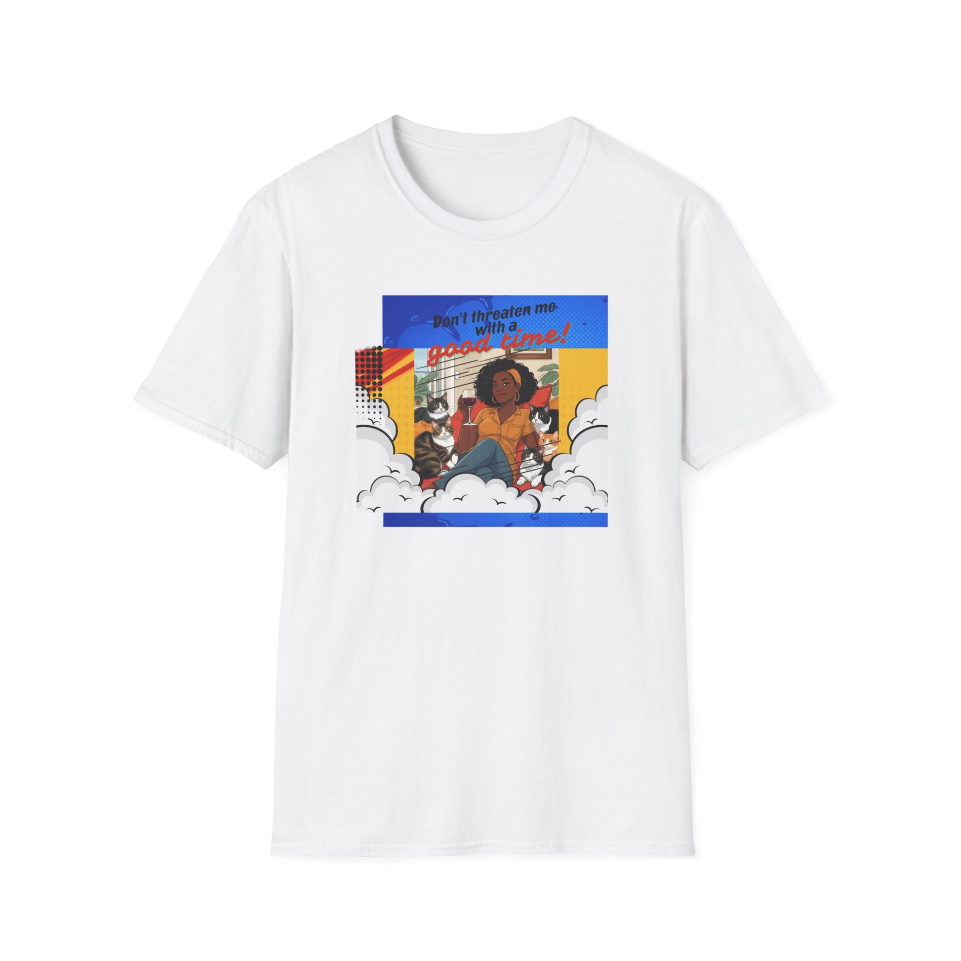 This T-Shirt features a fun graphic of a woman enjoying a glass of wine surrounded by cats, giving off a relaxed and playful vibe. Perfect for cat lovers who enjoy a good time with a glass of wine. Ideal for casual outings, parties, or relaxing at home. Relevant for birthdays, holidays, and cat-related celebrations.