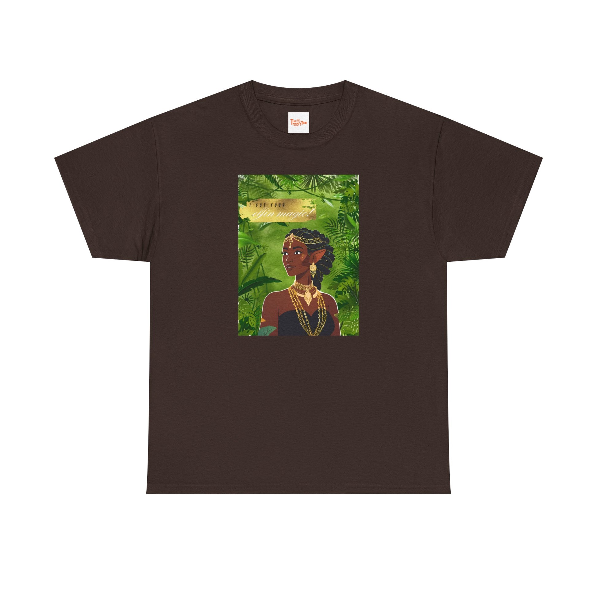 This graphic T-Shirt features a black elf in a forest, giving off a mystical and magical vibe. It is perfect for those who love fantasy and fairy tale themes. Ideal for wearing during Halloween, fantasy-themed parties, or everyday casual wear.