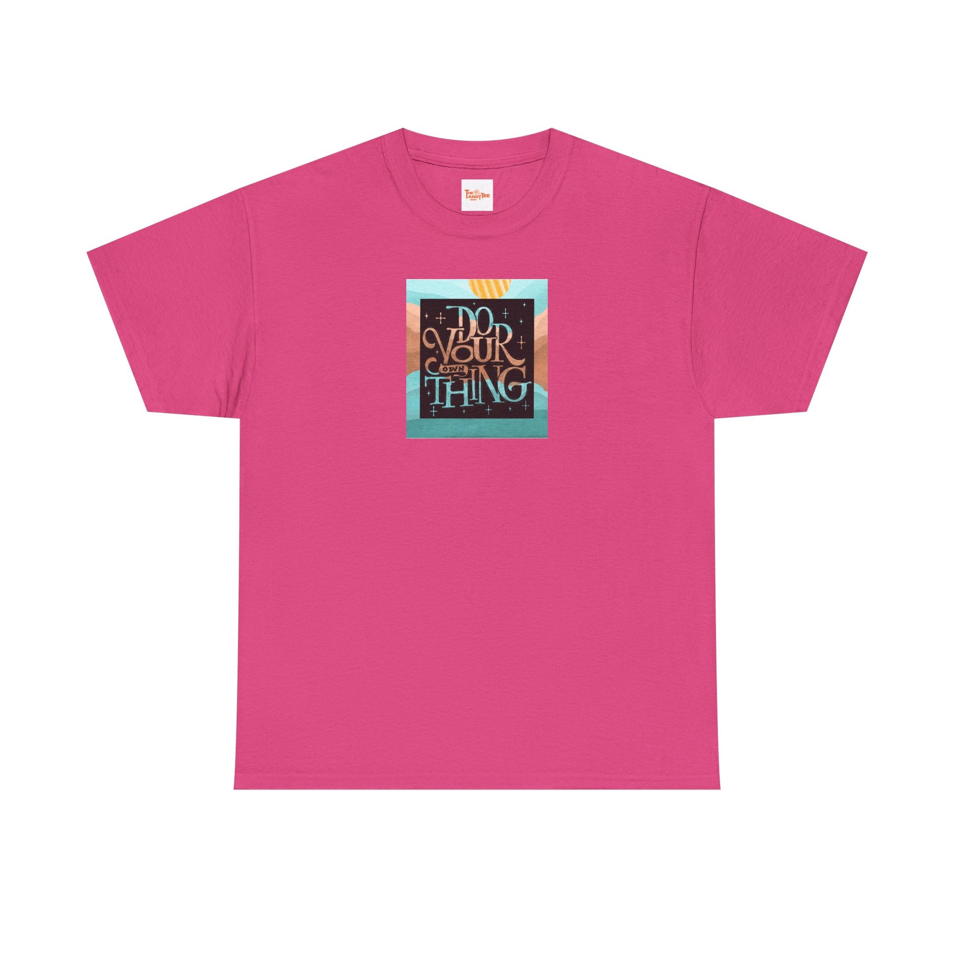 A versatile T-shirt with a motivational 'Do Your Own Thing' design that exudes empowerment and positivity. Perfect for those who value individuality and self-expression, fitting seamlessly into a casual wardrobe for everyday wear or special occasions. Ideal for adults looking for a comfortable and stylish garment.