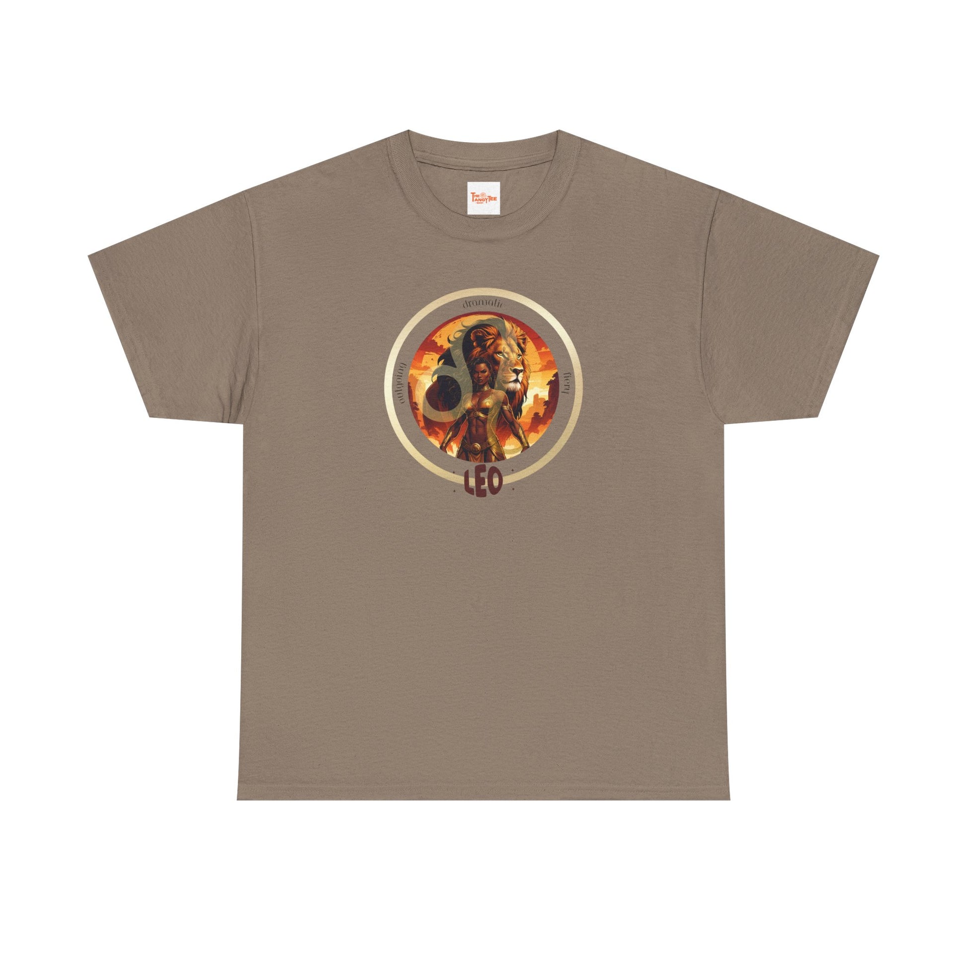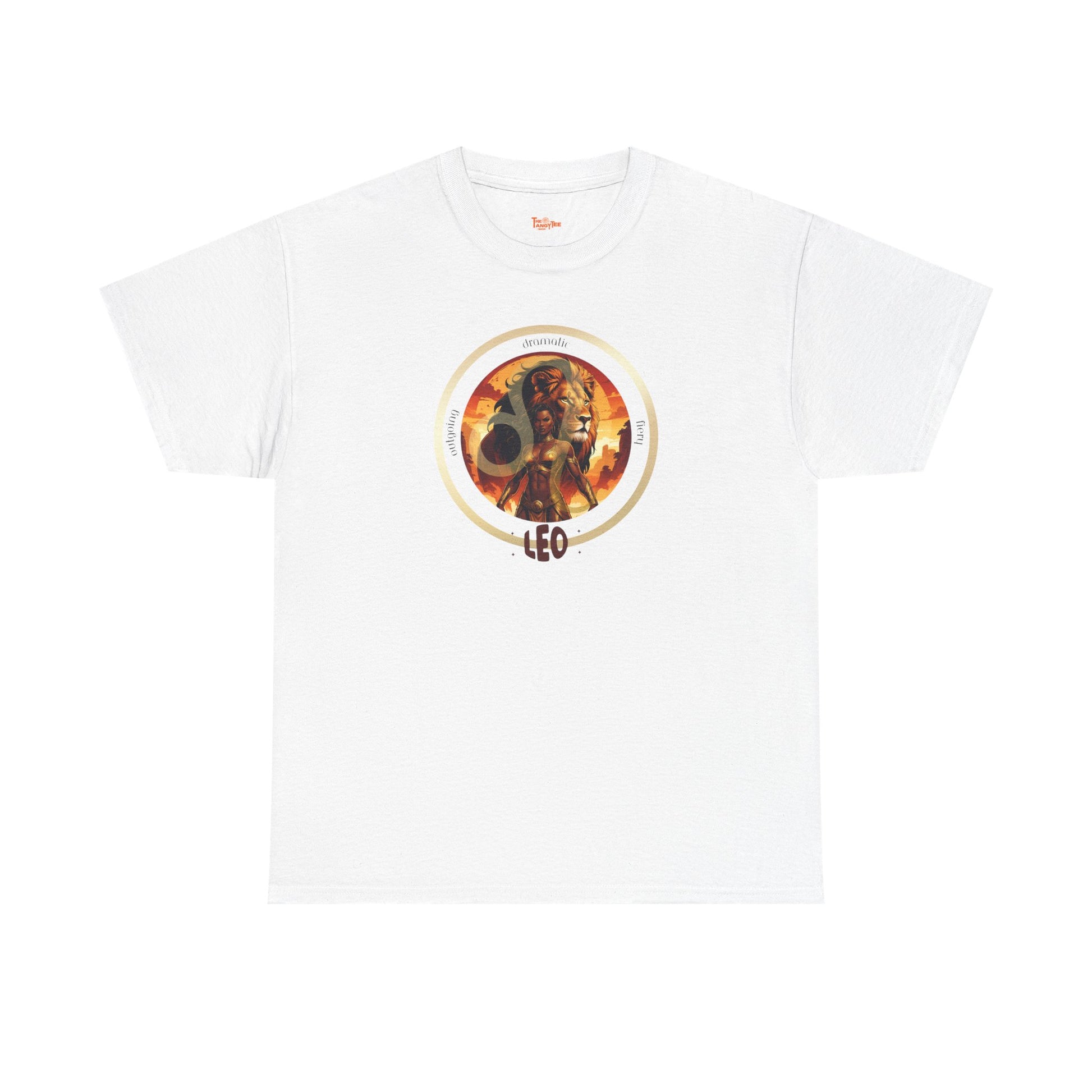 A classic Leo themed T-Shirt featuring a graphic of a black woman and a lion. This T-Shirt exudes strength and power, making it a great addition to anyone's wardrobe. Perfect for those who are astrology enthusiasts or appreciate strong, bold designs. Ideal for wearing on casual outings, astrology-themed events, or as a statement piece during Leo season.