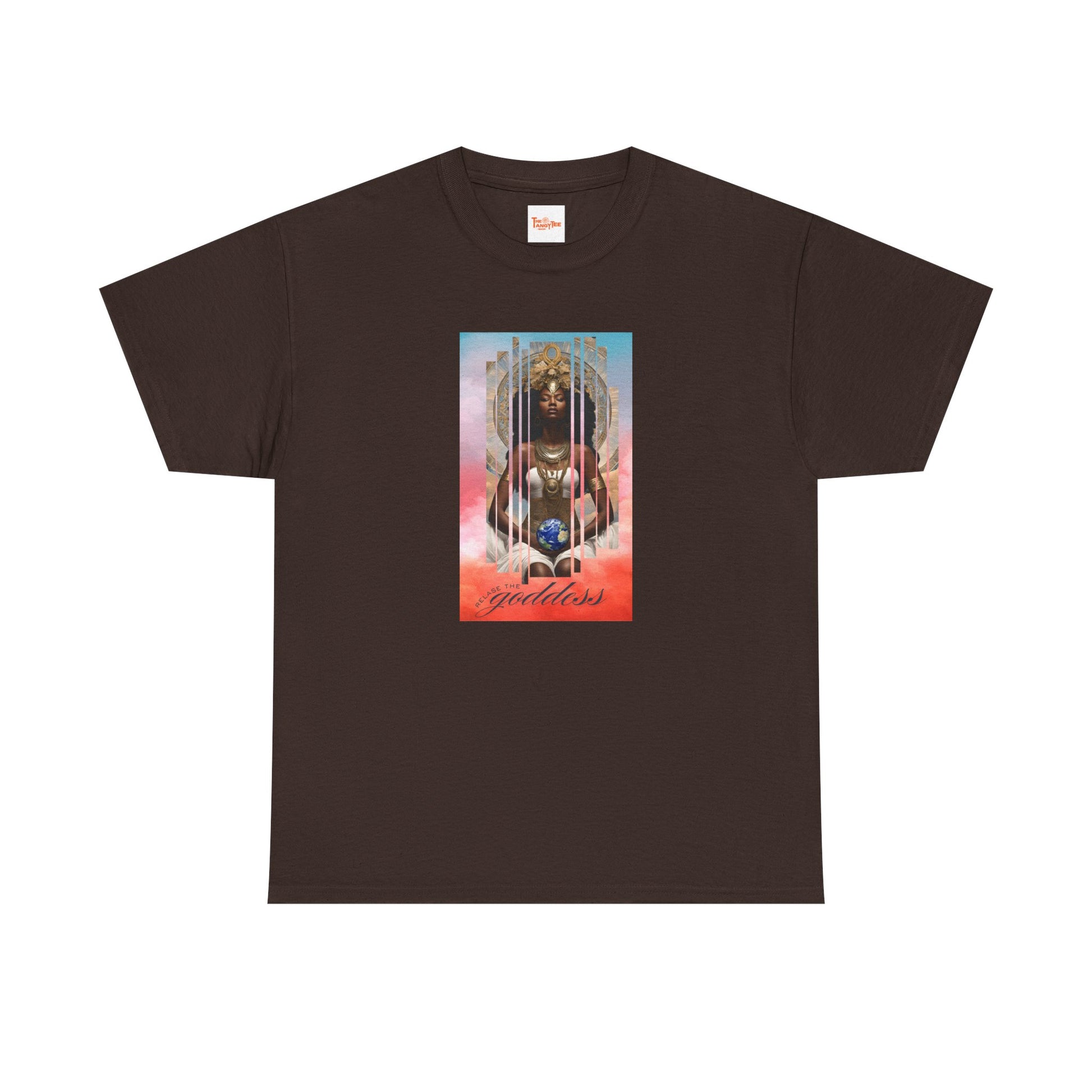 A powerful statement piece, the T-Shirt features a graphic of a woman in a white dress holding a globe, exuding a strong and empowering vibe. Perfect for those who embrace their inner goddess and want to make a bold statement. Ideal for International Women's Day, Earth Day, or any day you want to channel your inner strength and femininity.
