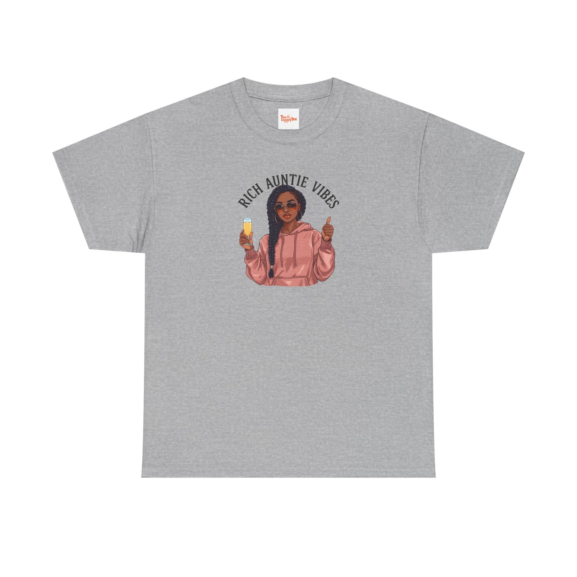 Rich Auntie Vibes T-Shirt — Black Woman Champagne Graphic