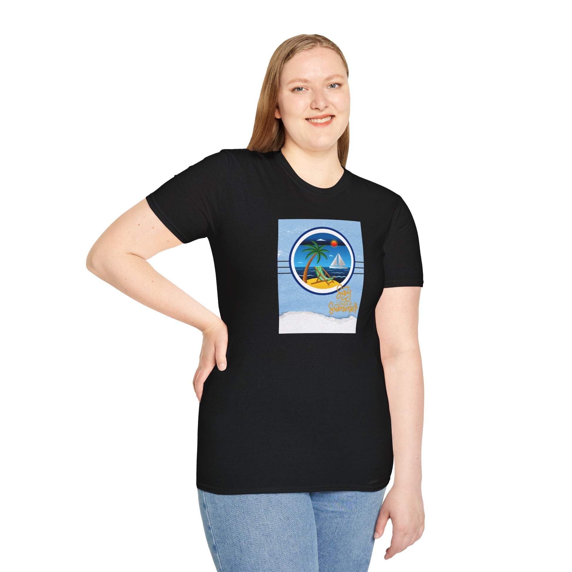 Wake up to the stretch of warm sand and the hush of waves. This lightweight tee carries a simple ’Say Hello to Summer’ beach scene—a slouched chair, a palm silhouette, the horizon line—so you can fold a little vacation into everyday life. It sits casually over shorts or tucked into a high-waisted skirt, ready for slow mornings at the boardwalk, evening bonfires, or packing for a weekend coastal escape. The graphic feels like a postcard to yourself: laid-back, sun-worn, and quietly joyful.