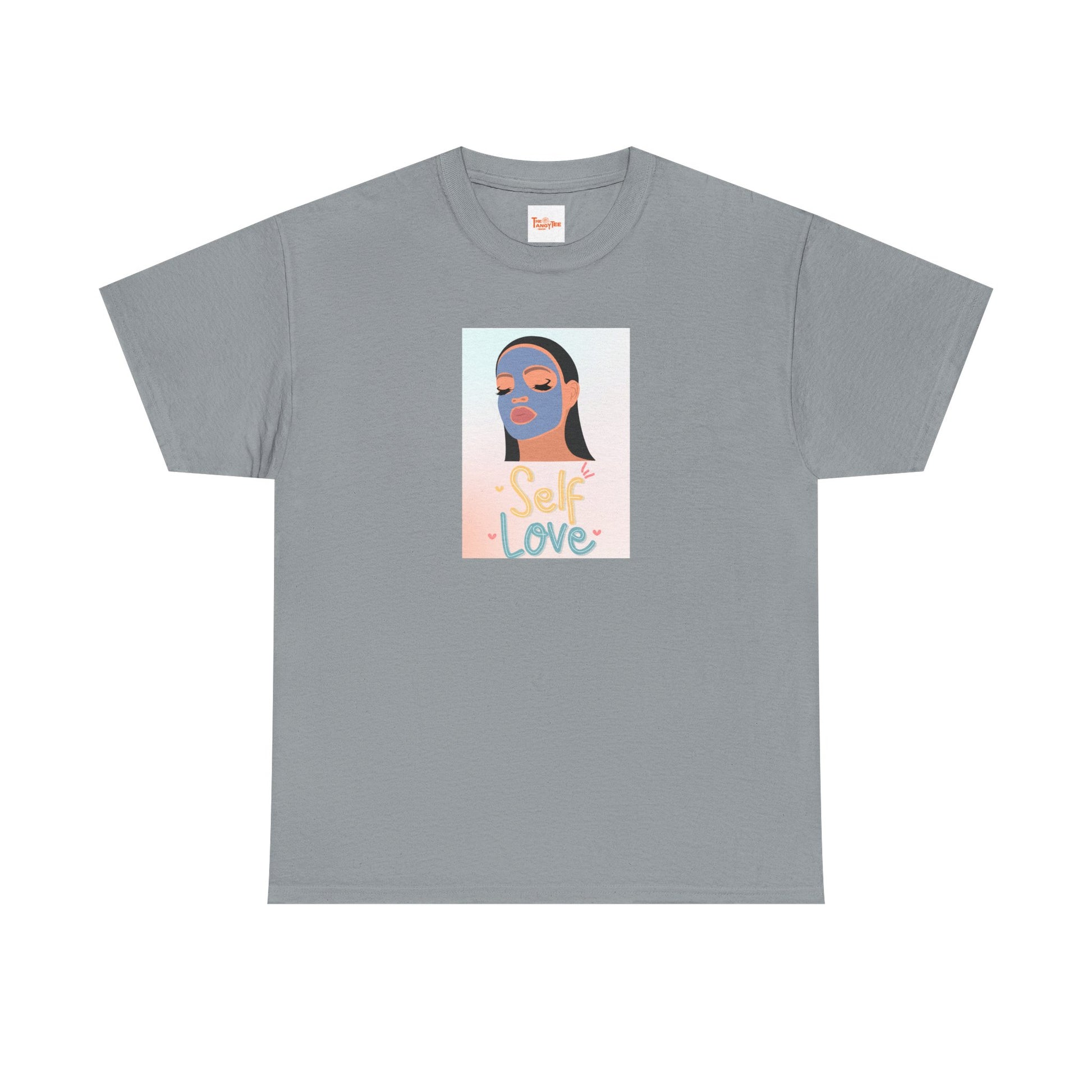 This T-Shirt features a graphic of a woman wearing a face mask, promoting self-love. The classic fit and medium fabric make it comfortable for year-round wear. Perfect for adults looking for a comfy and sustainable tee to express self-care and positivity. Relevant for holidays like Mother's Day, Women's Day, and International Self-Care Day.