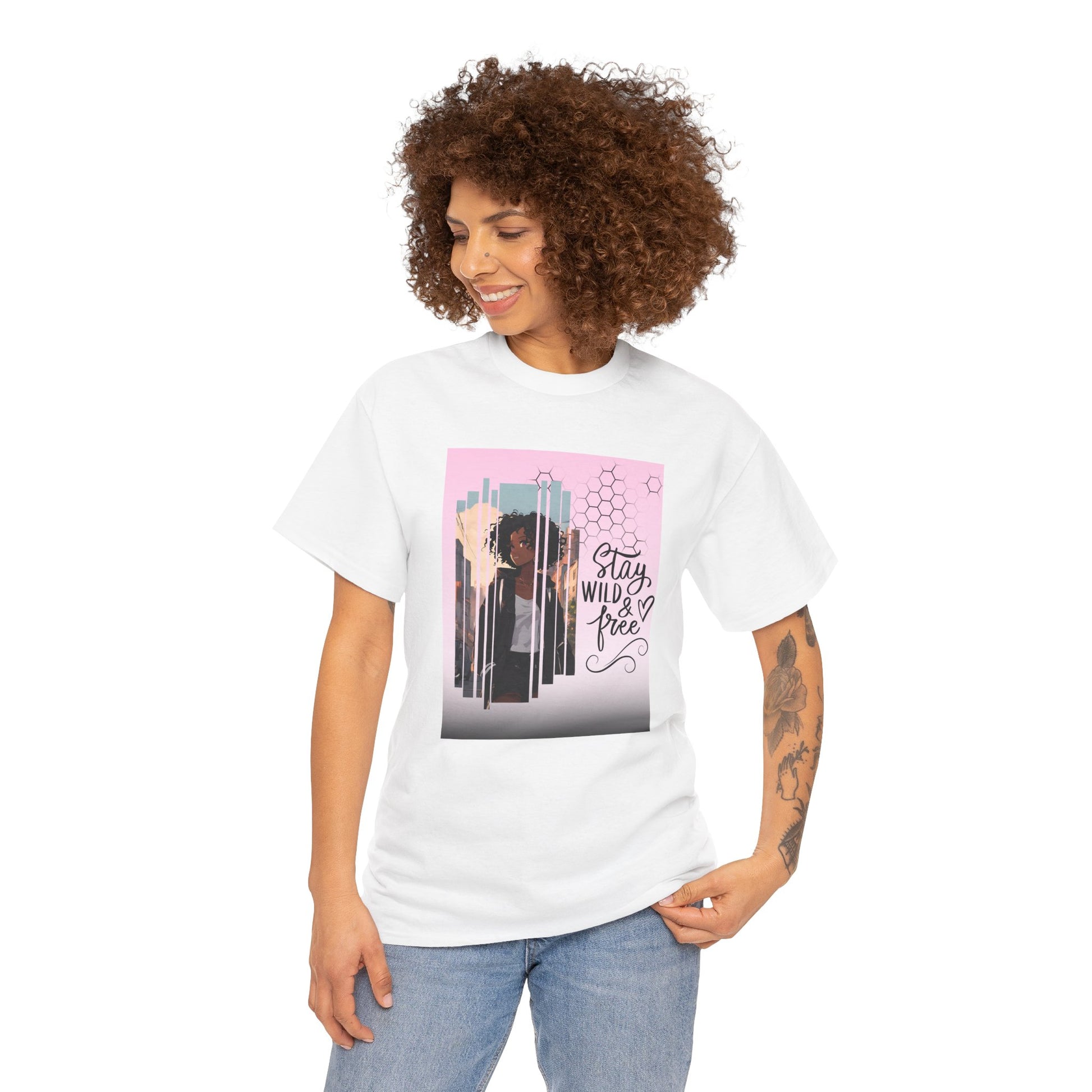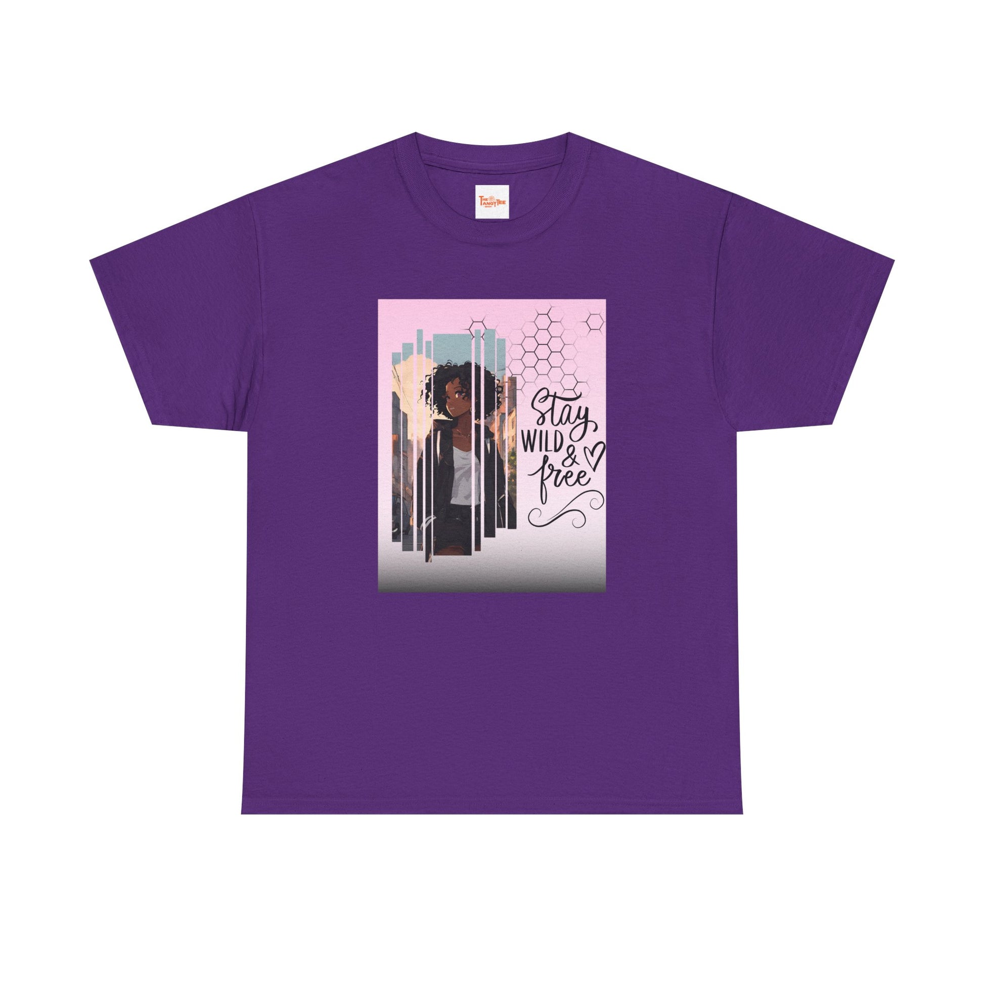Stay Wild and Free Black Anime Girl City Graphic Tee