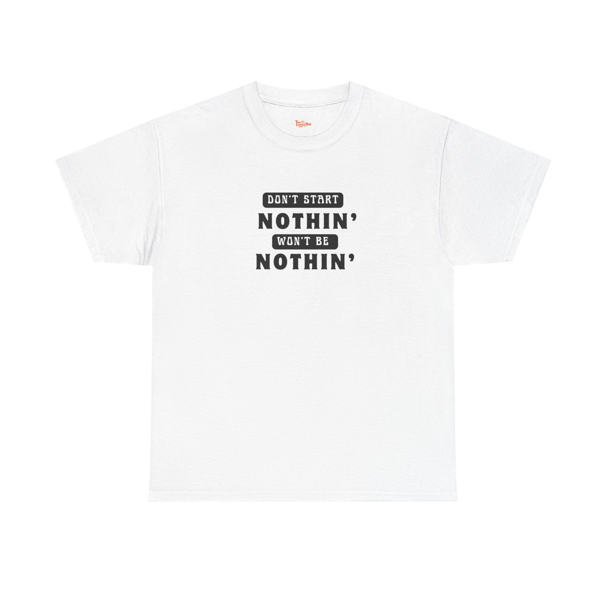 This T-Shirt features a bold and edgy design that says 'Don't Start Nothin', Won't Be Nothin'. It exudes a strong and confident vibe, perfect for those who want to make a statement with their apparel. Ideal for adults looking for a casual yet stylish addition to their wardrobe, this tee is suitable for everyday wear or special occasions. Great for occasions like birthdays, casual gatherings, and music festivals.