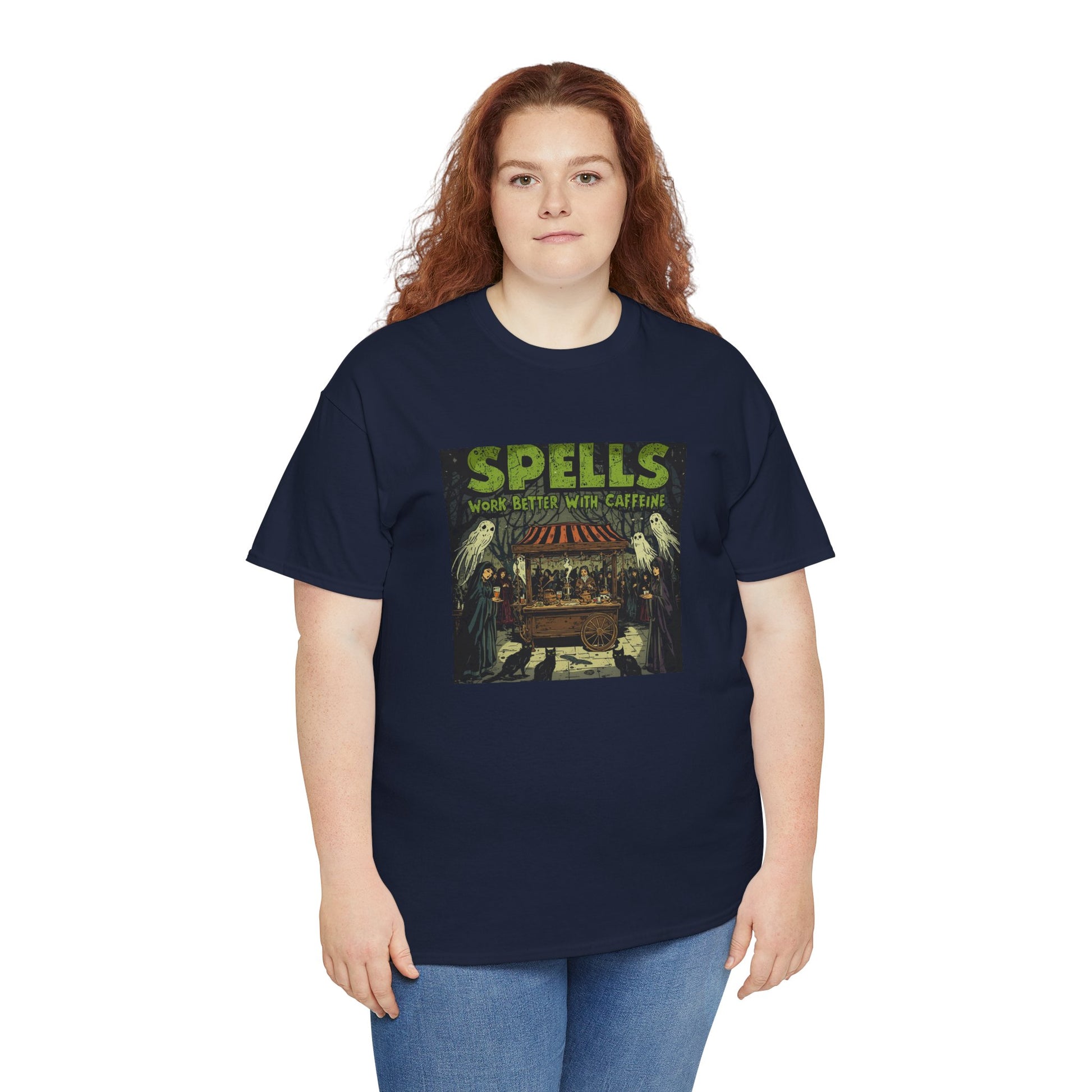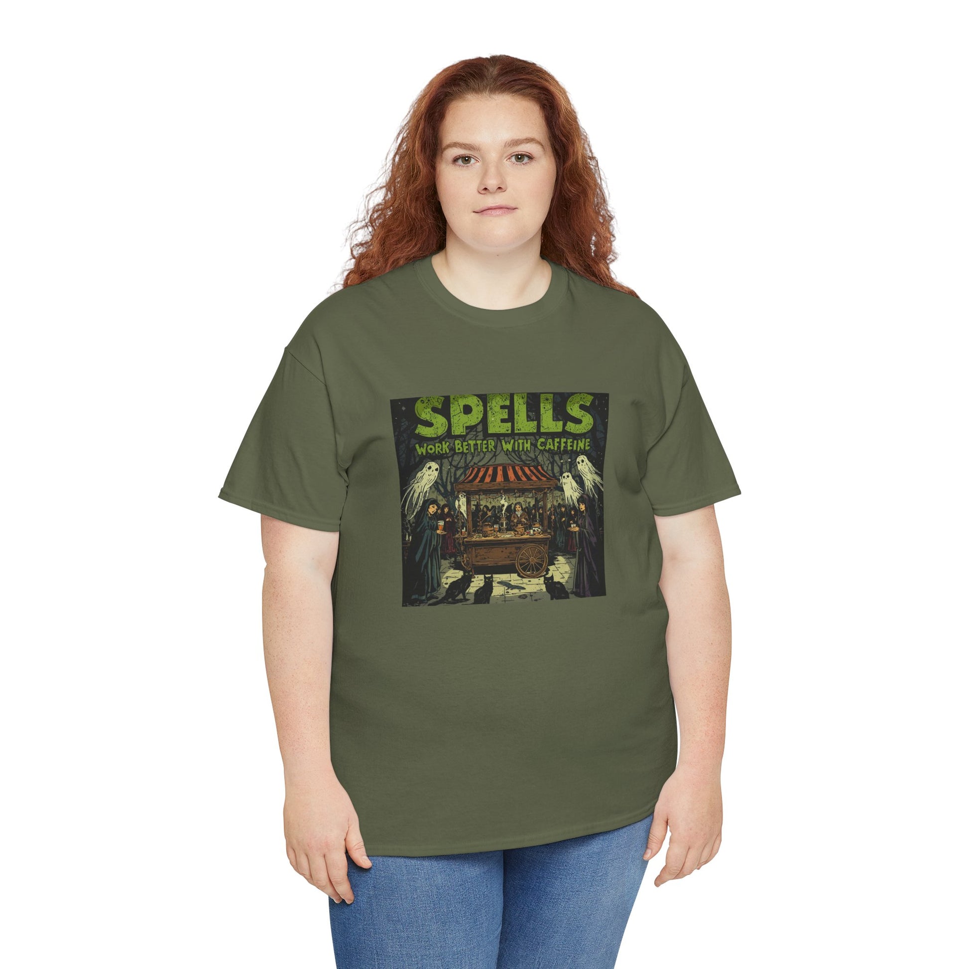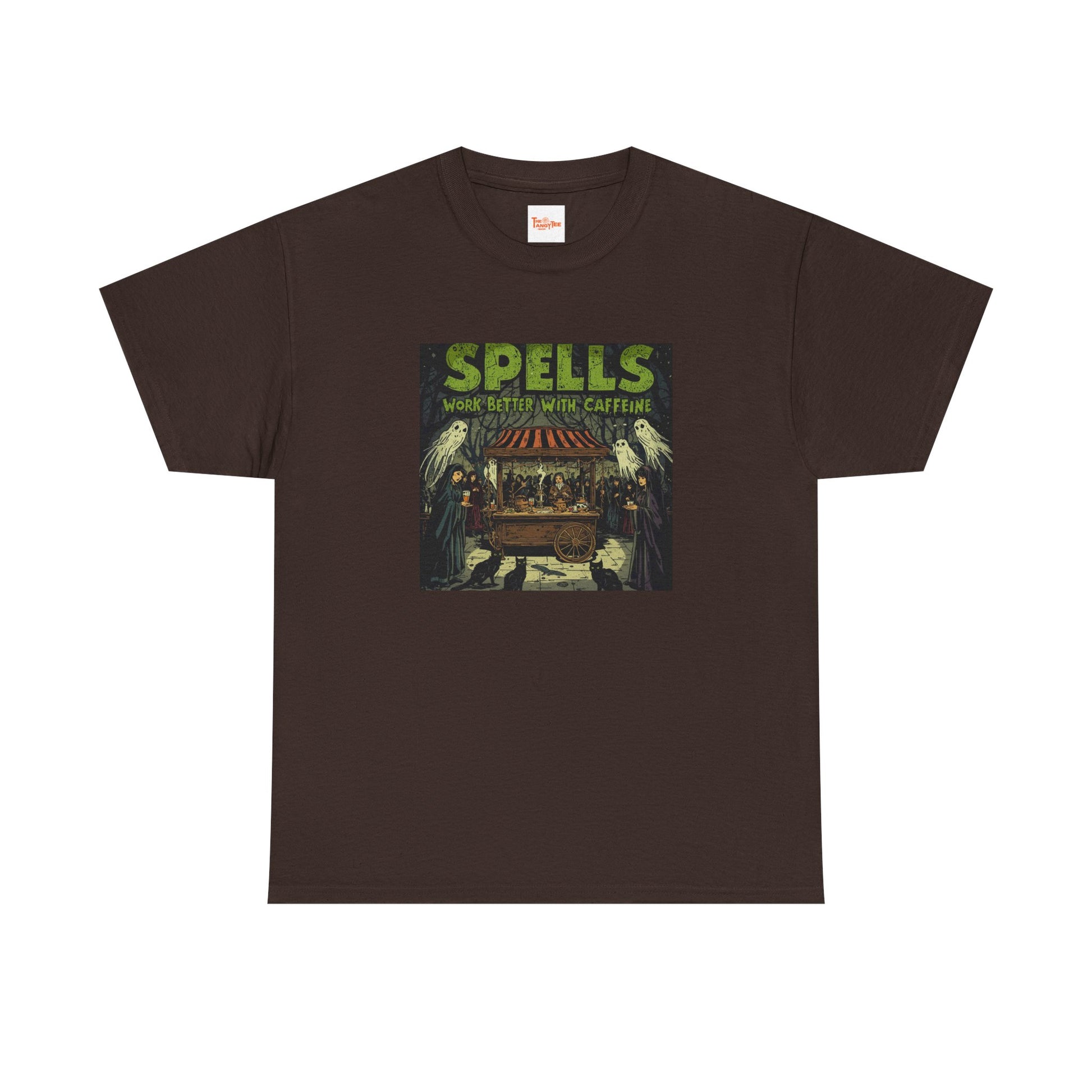 T-Shirt Spells Work Better with Caffeine Gothic Witches Animals Tee