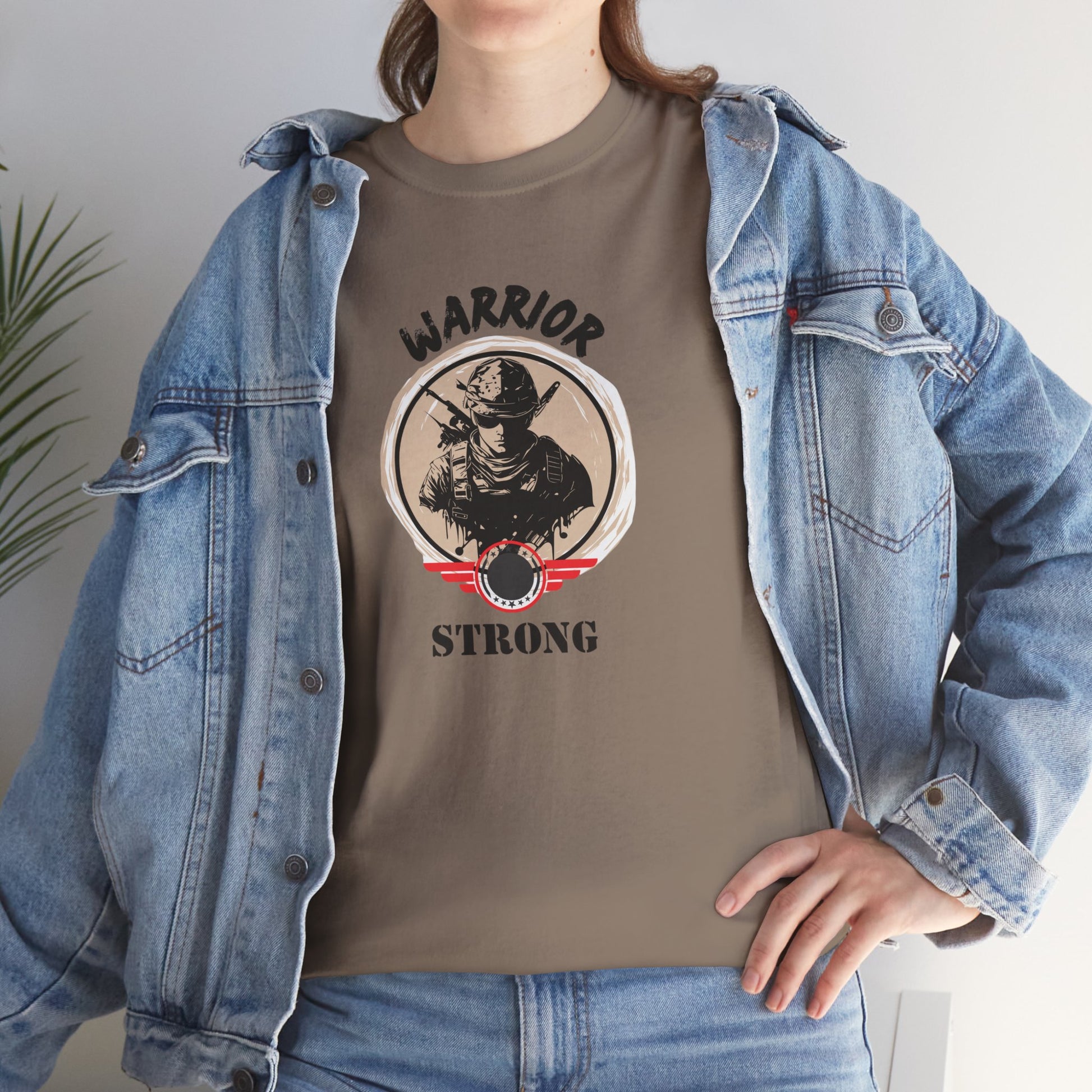 Warrior Strong graphic T-Shirt exuding strength and resilience. Perfect for those who appreciate military aesthetics or want to show their inner warrior spirit. Ideal for Veterans Day, Memorial Day, or as a gift for active-duty service members or military enthusiasts.
