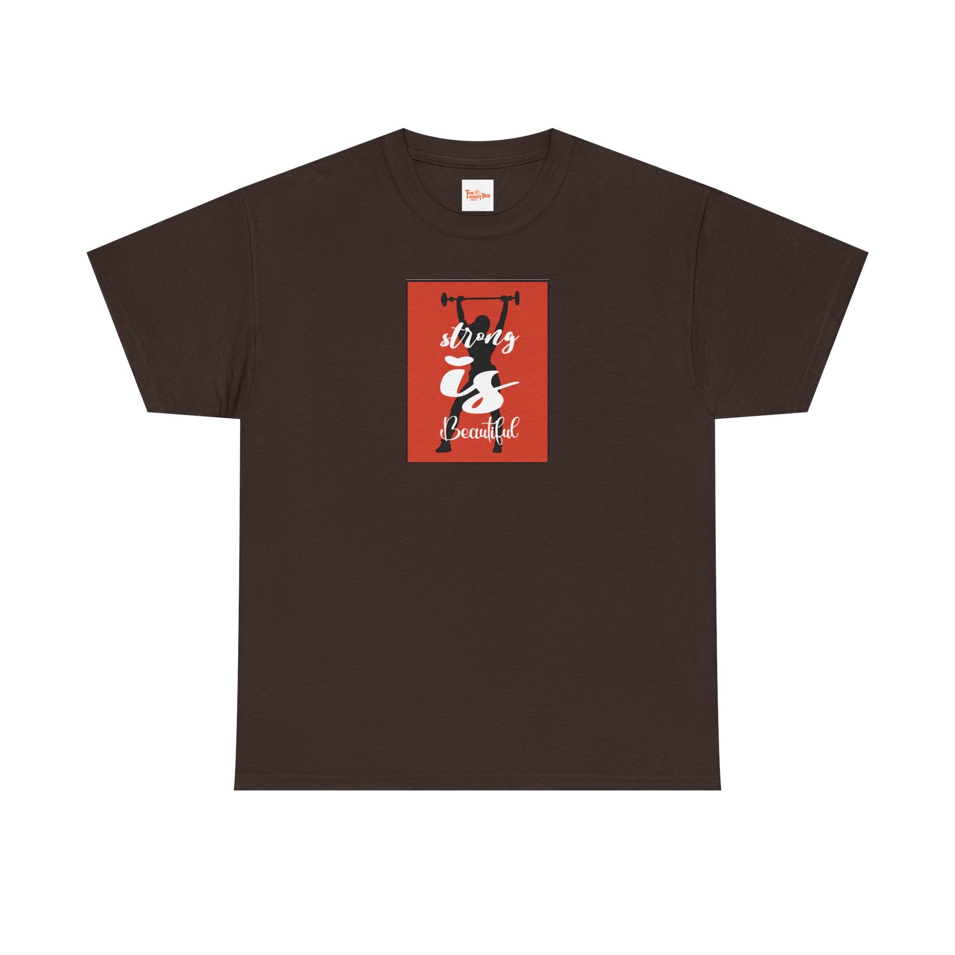 A classic unisex heavy cotton T-shirt featuring a graphic of a woman lifting weights in silhouette, giving off a strong and empowering vibe. Perfect for fitness enthusiasts, gym-goers, and anyone who appreciates the message that strength is beautiful. Ideal for wearing to the gym, yoga class, or as everyday casual wear. Great for International Women's Day, Fitness Awareness Month, and any occasion celebrating strength and empowerment.